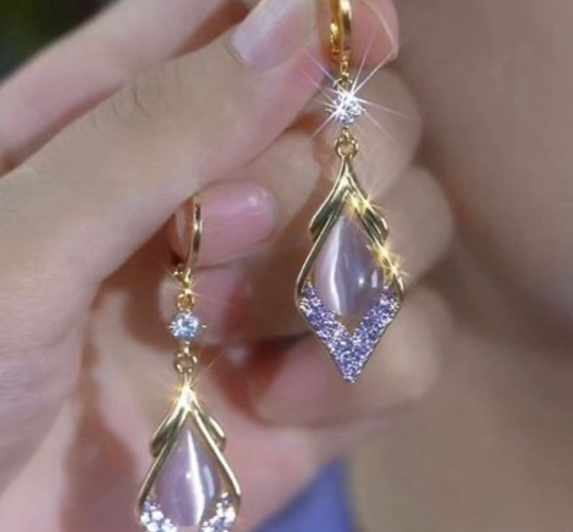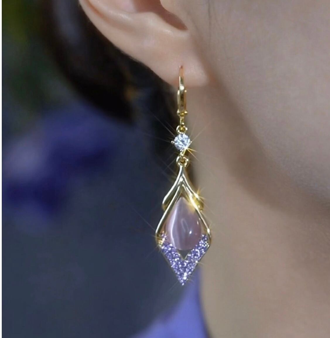 ダイヤモンド風のクリアストーンを添えた、高級感あふれるピアス。