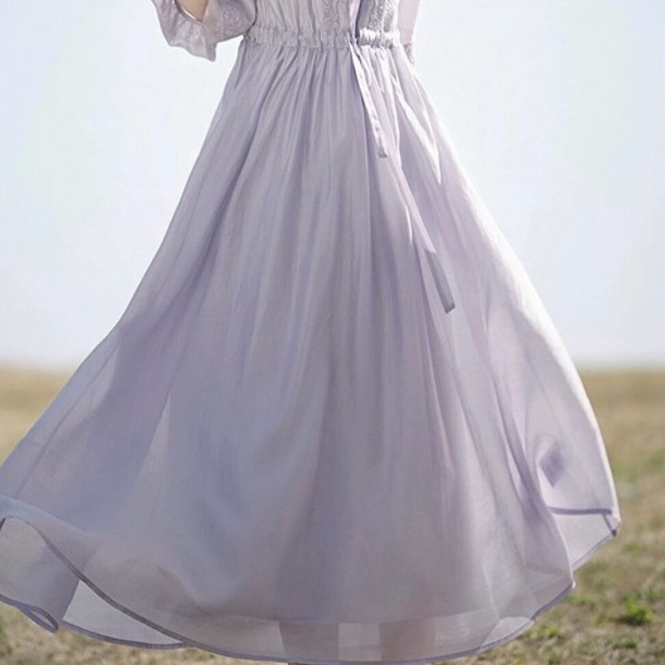 肌にそっとなじむような軽さと透明感を演出する、夏にぴったりのロングワンピース。