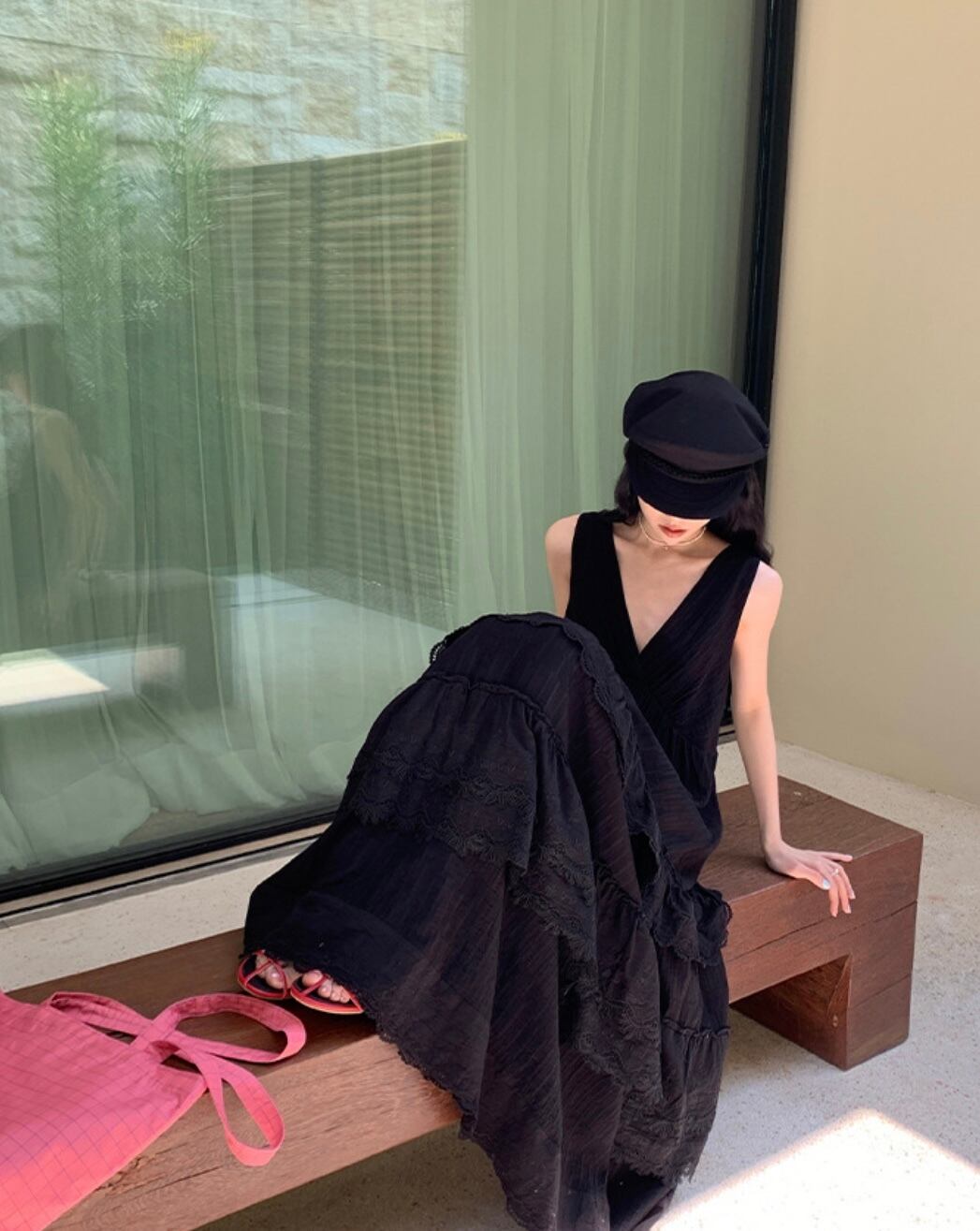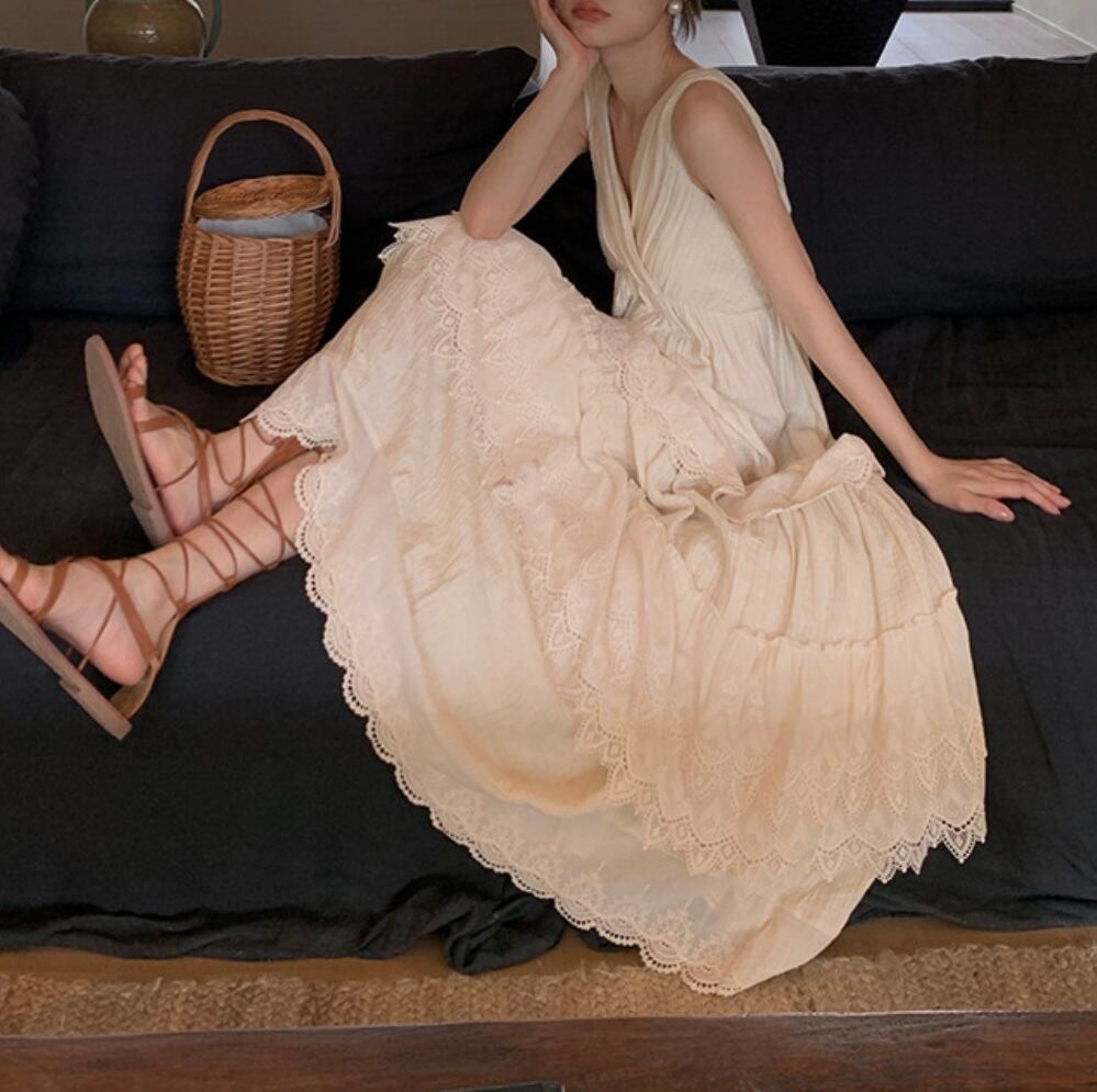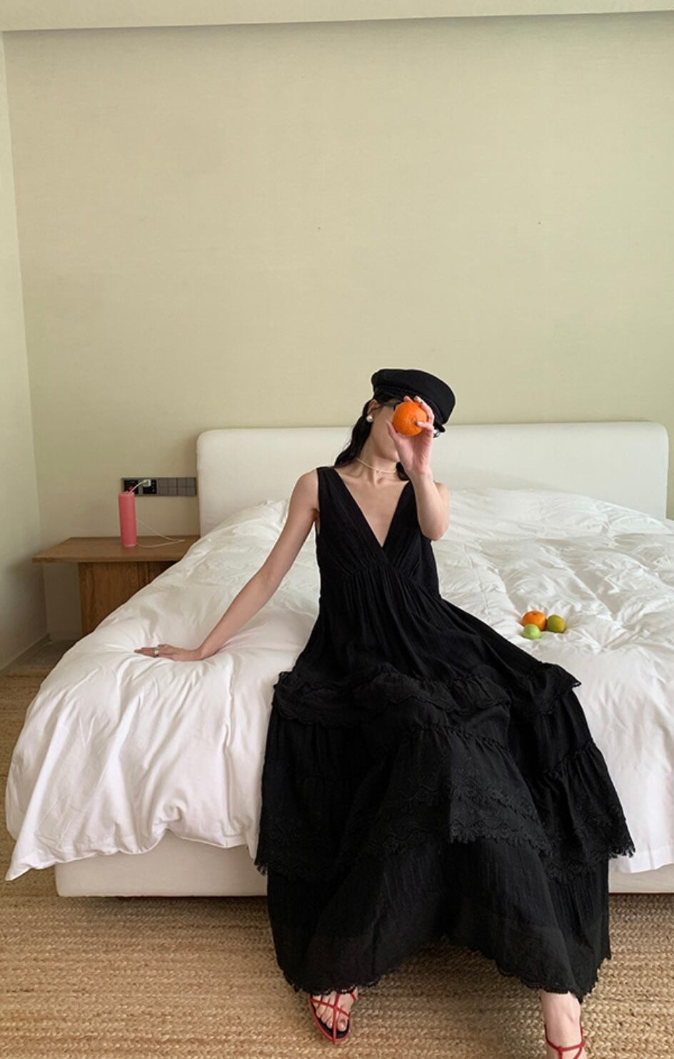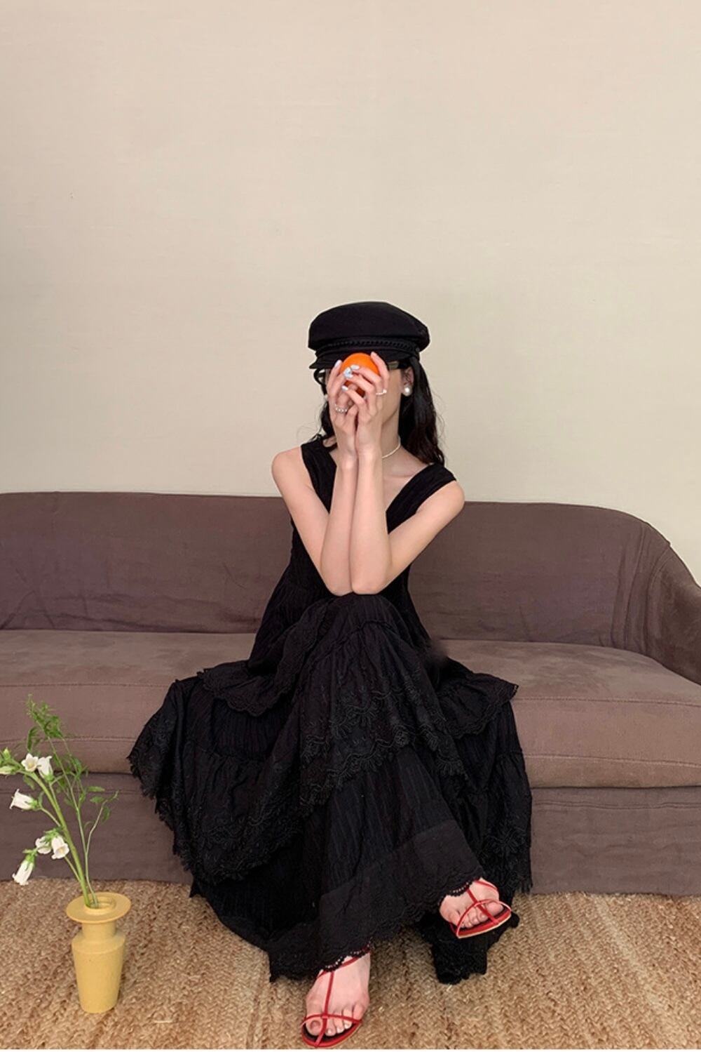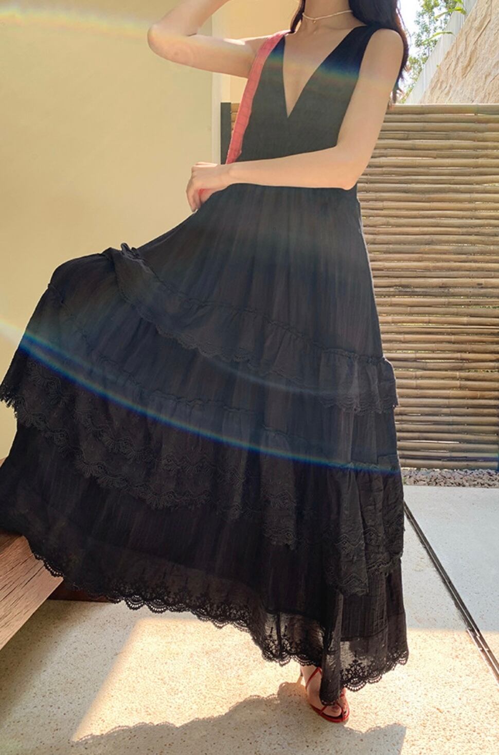ウエストから裾にかけて段々に重なるティアードフリルが特徴で、ふんわりと立体的に広がるAラインが魅力。