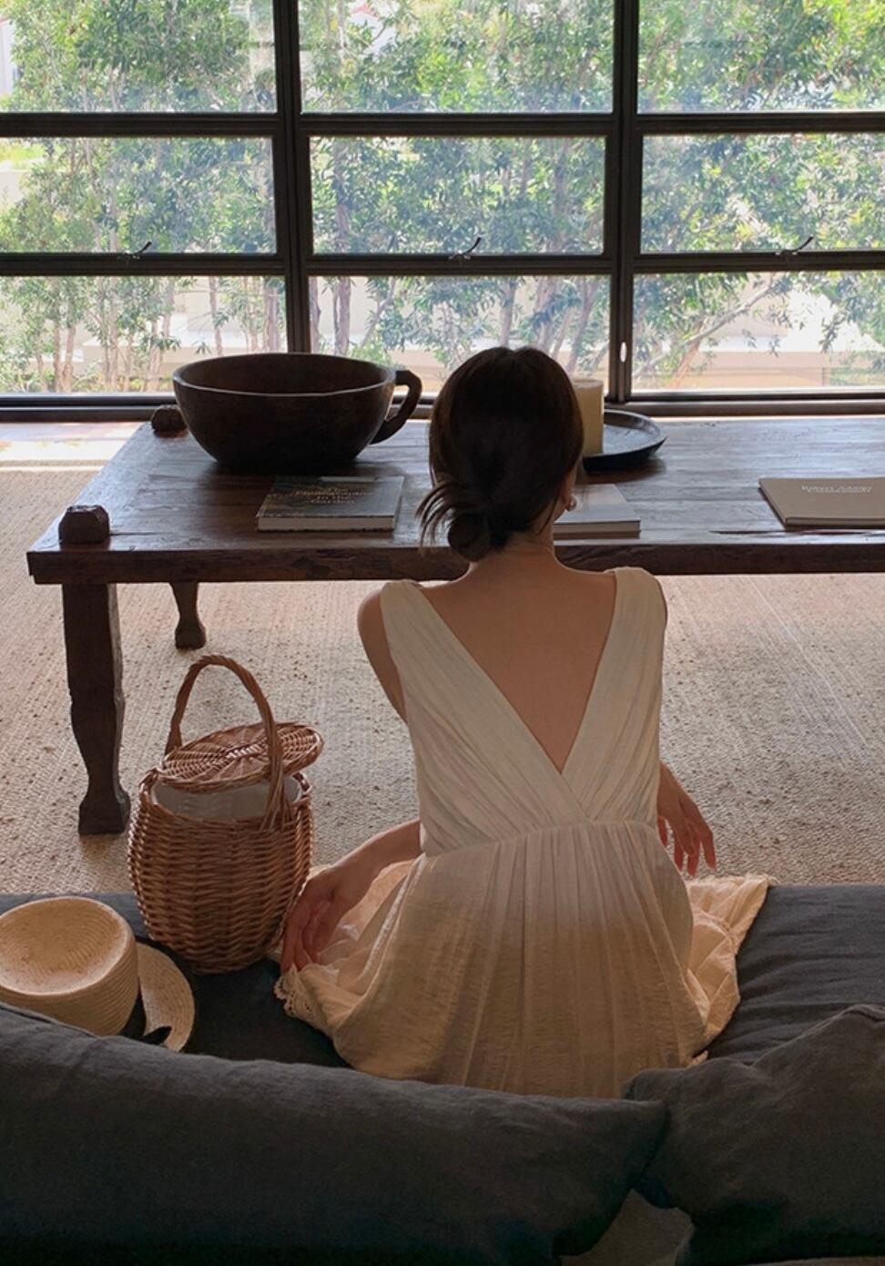 ノースリーブデザインで、デコルテや腕まわりもすっきり見せてくれます。